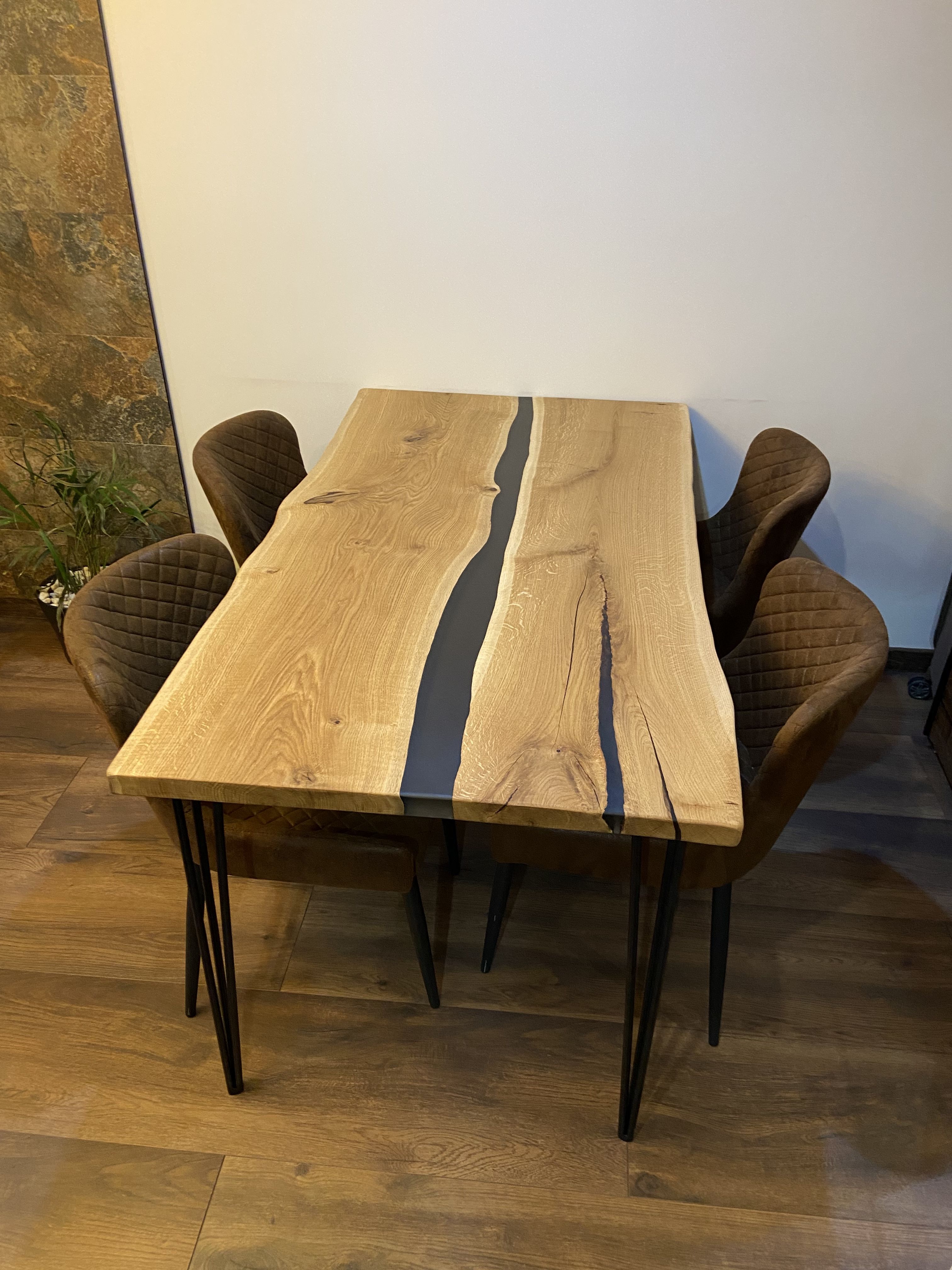 Notre nouvelle table à manger SYCORY est véritablement devenue le cœur de notre maison. La superbe combinaison de grain de bois naturel et d'époxy est non seulement magnifique, mais elle rend également chaque repas spécial. Le savoir-faire est impeccable et nous aimons la façon dont la table s'intègre parfaitement dans notre espace, ajoutant chaleur et caractère à notre salle à manger