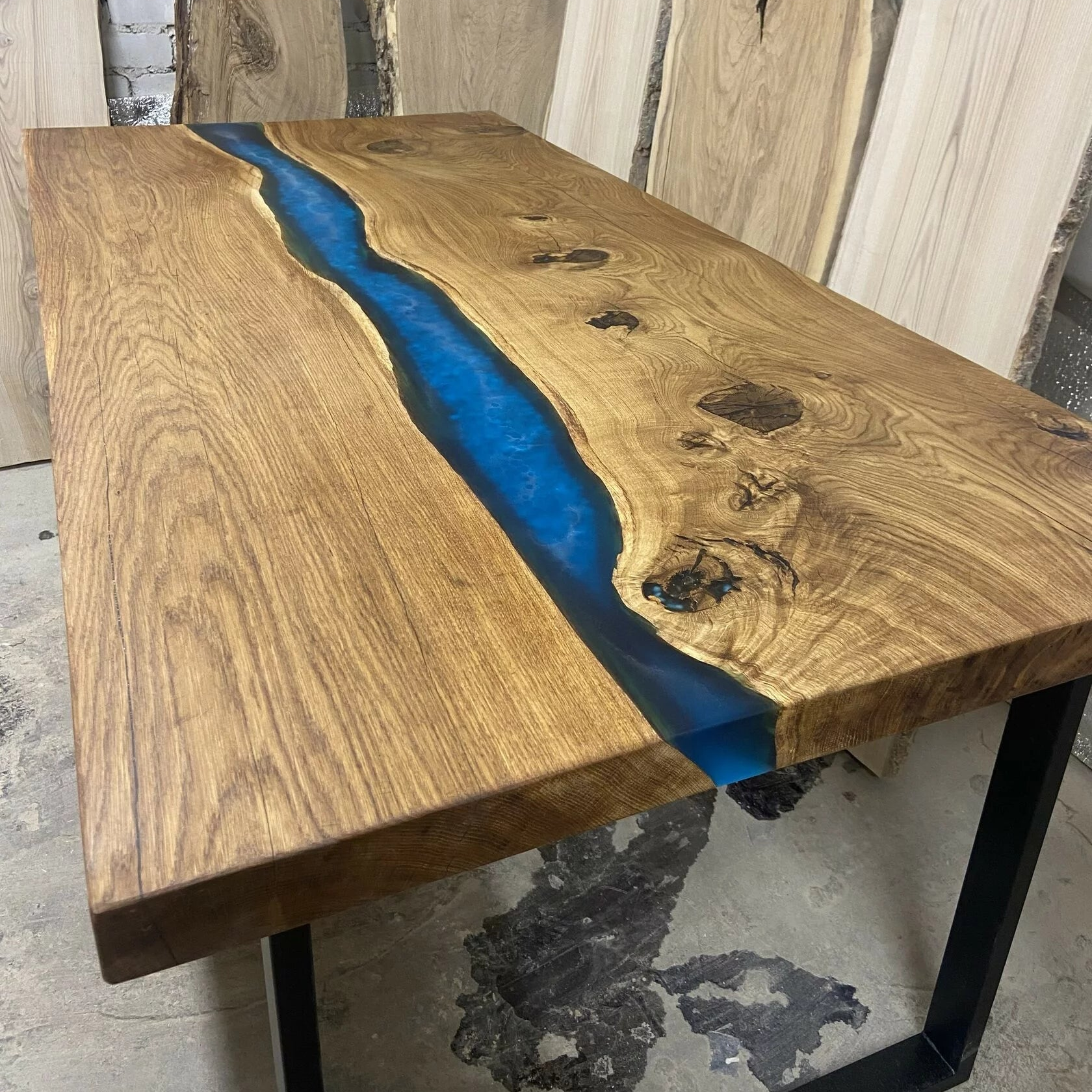 Nous utilisons des bois durs de première qualité tels que le chêne, le noyer, l'olivier et l'acacia, combinés à de la résine époxy écologique pour une finition durable et magnifique.