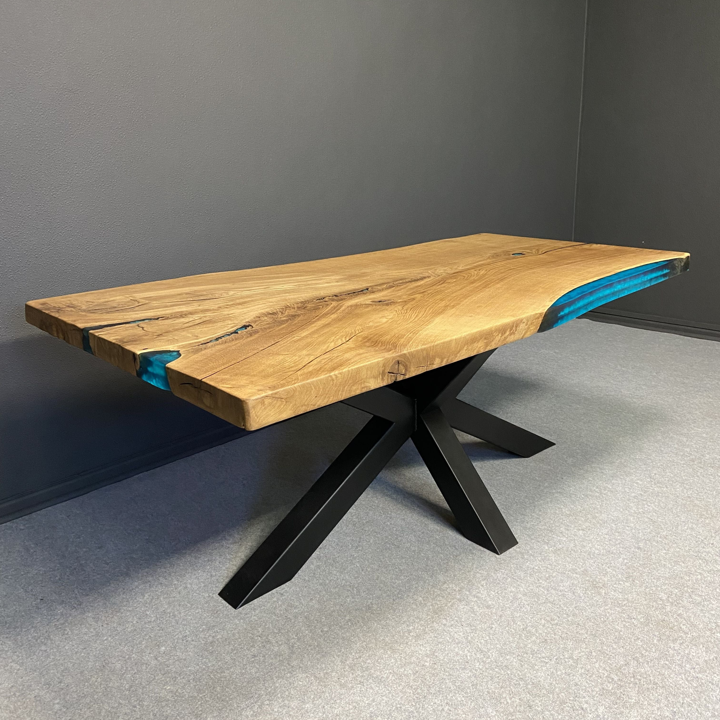 I nostri tavoli sono realizzati con legni pregiati come la quercia e il noce, combinati con una resina epossidica durevole e resistente ai raggi UV per una finitura bella e duratura.