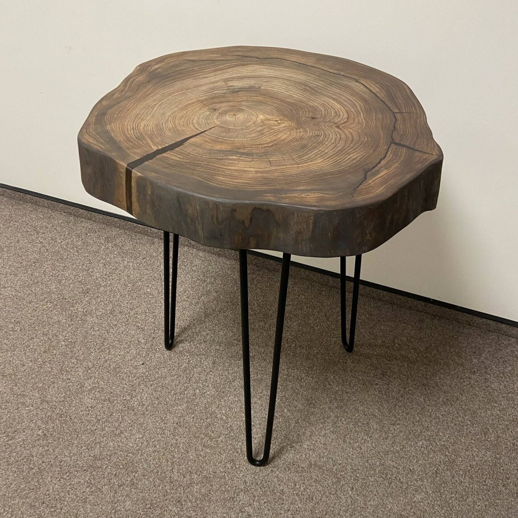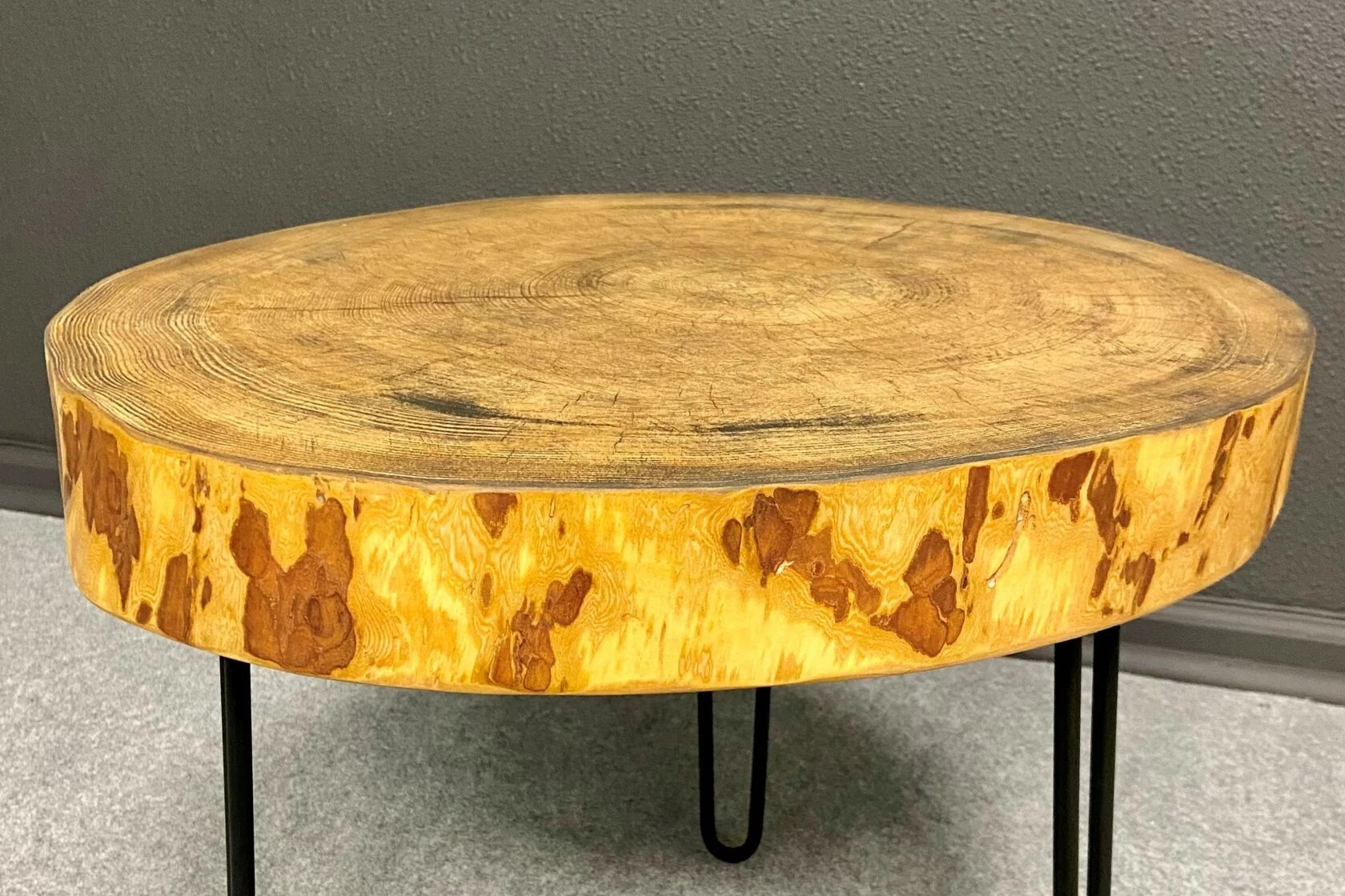 Crafted from cross-sections of solid wood, each coffee table is a unique masterpiece, showcasing the natural beauty of wood grains, knots, and textures