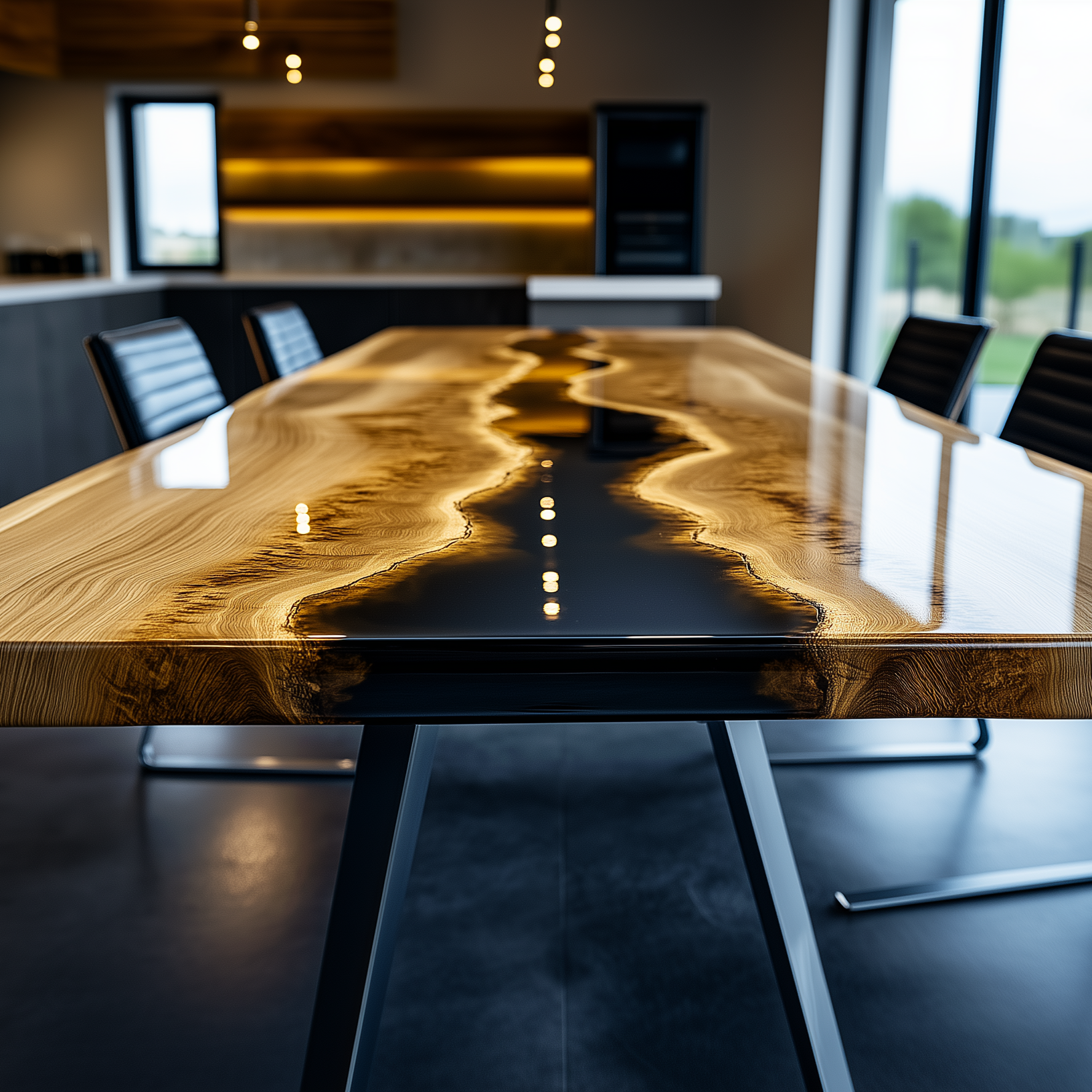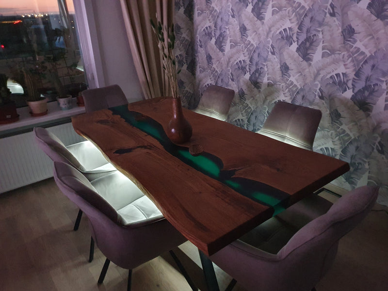 We were looking for a unique dining table, and SYCORY delivered something truly special. The custom design, with its beautiful natural wood and striking epoxy details, fits perfectly in our space. The addition of the under-table lighting was a brilliant idea— it creates a cozy and modern atmosphere, especially in the evening.