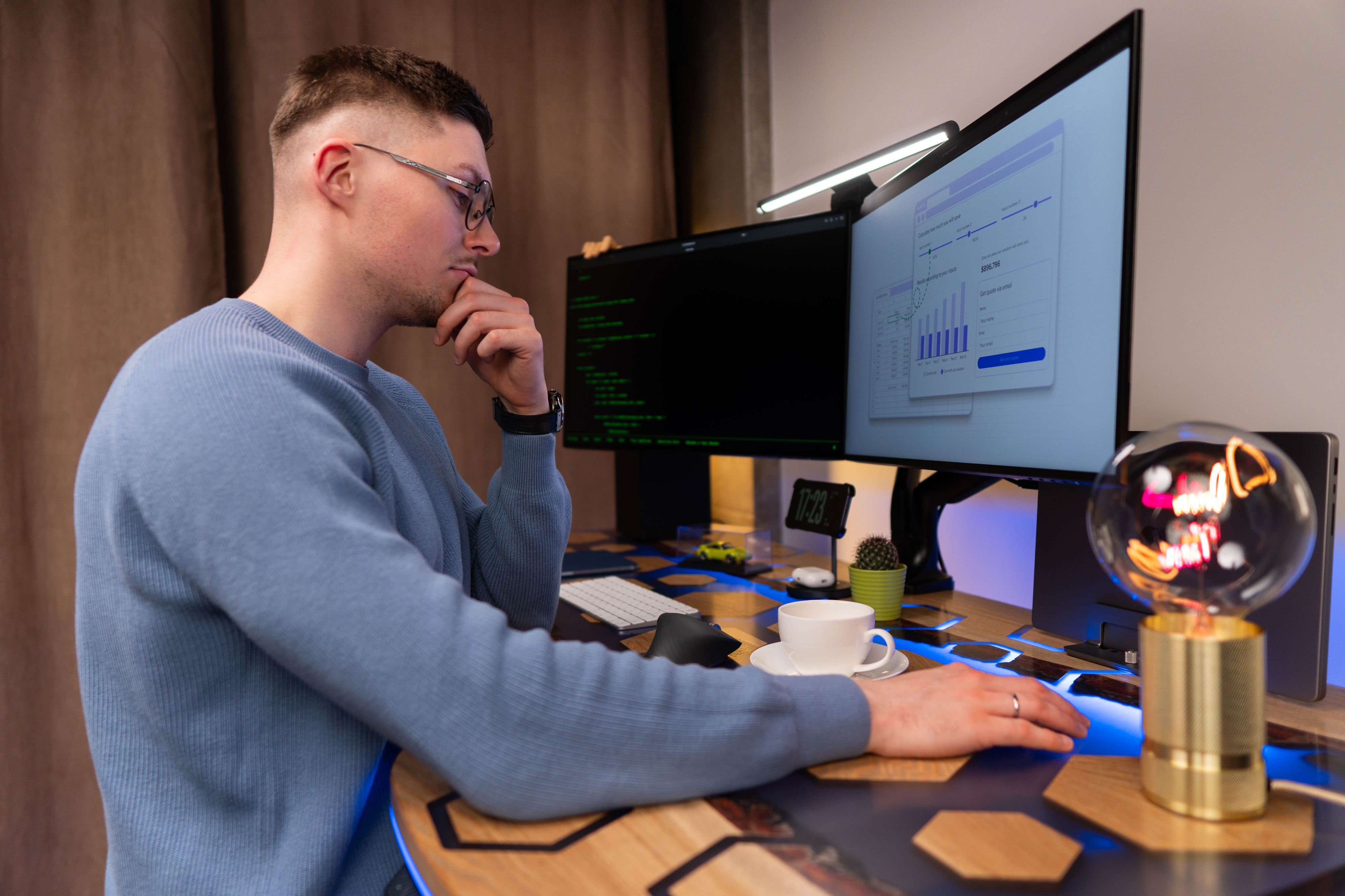Enhance your productivity and health with our adjustable standing desk. Transition seamlessly from sitting to standing with just a push of a button.