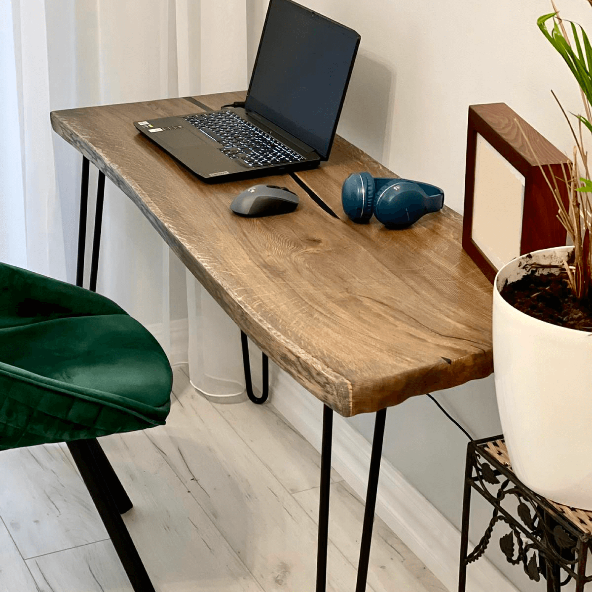 Crafted from premium oak, this console table offers both durability and elegance. Each piece is carefully handcrafted, preserving the natural wood grain and texture for an authentic feel. The smooth black epoxy accents add a modern touch, while the sturdy construction ensures long-lasting use. Ideal for any setting, this table showcases a blend of traditional craftsmanship and contemporary design.